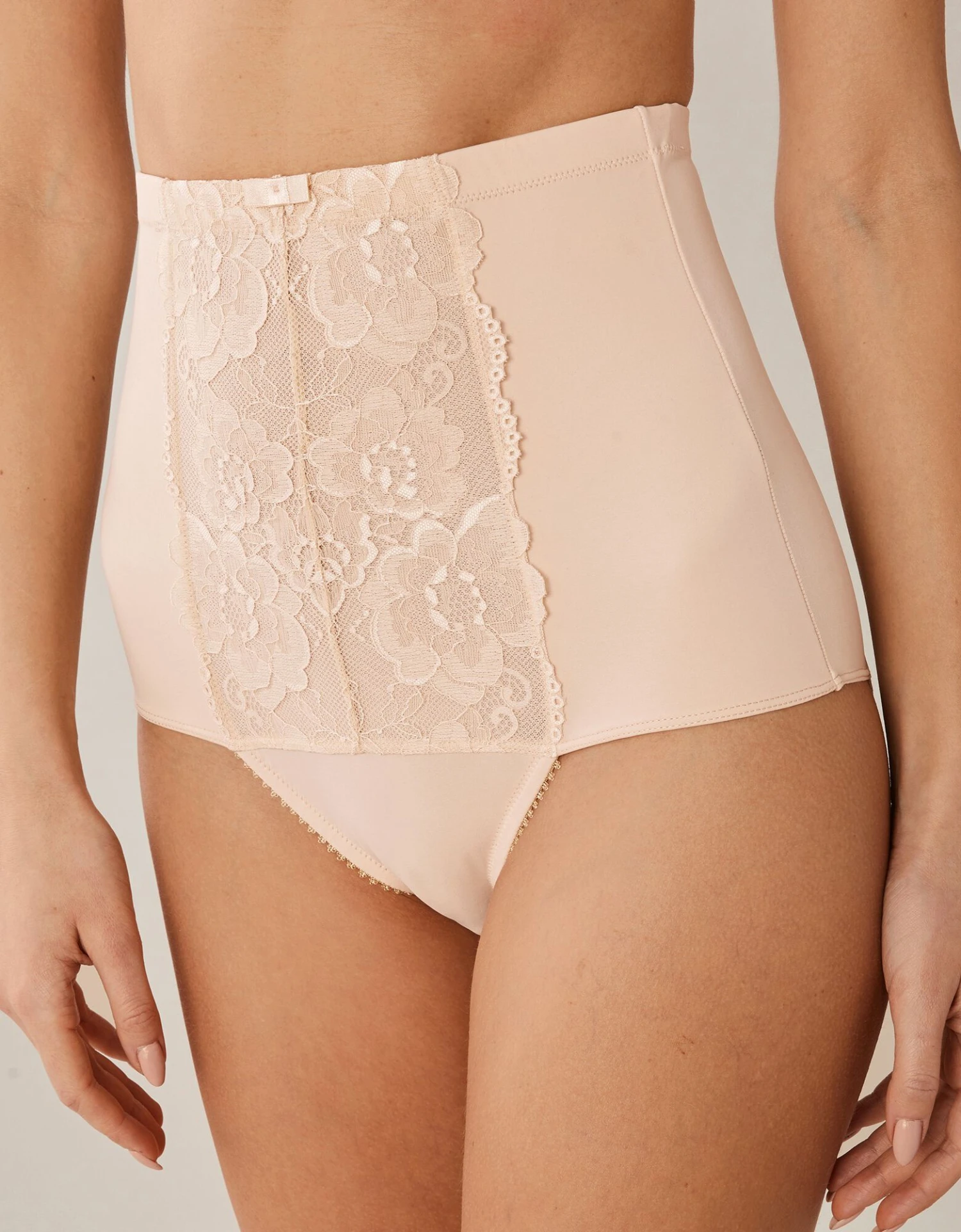 – Plastron en dentelle doublé de tulle gainant devant